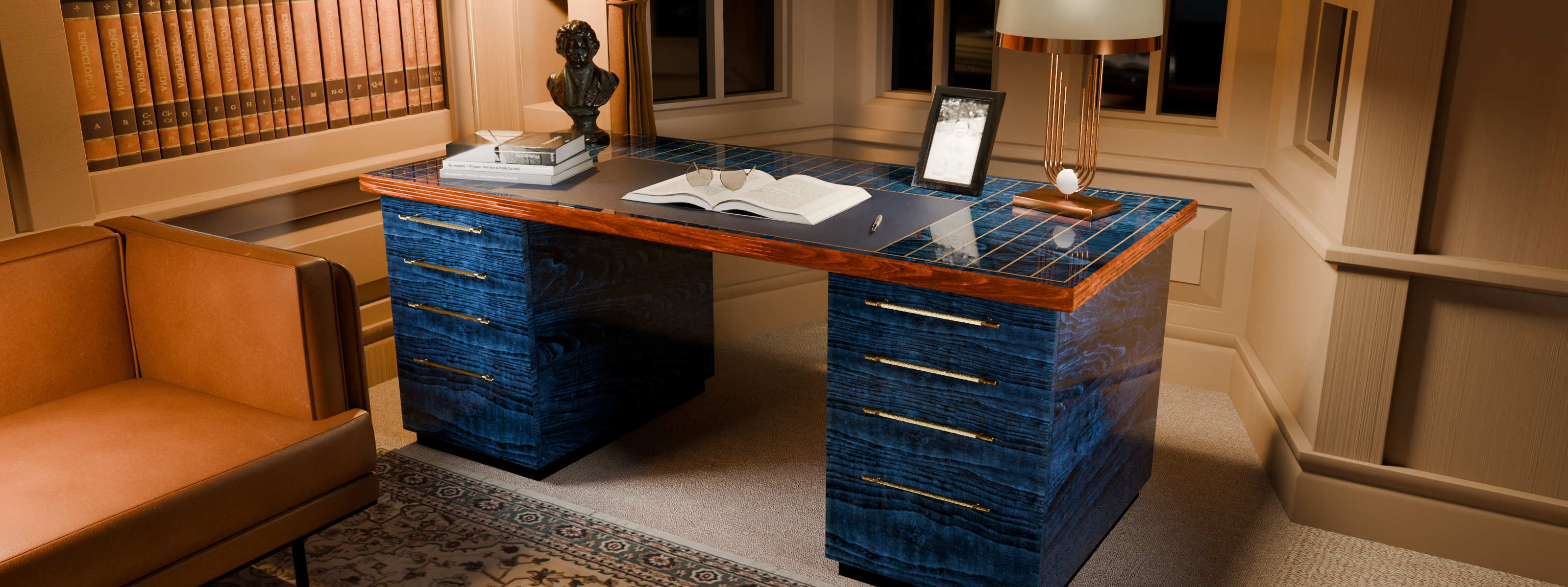 And our journey has happily embraced the use of modern materials. Toughened optical quality glass, polished aluminium, liguid glass epoxy, aniline leather and exotic hardwoods all feature prominently in our work.